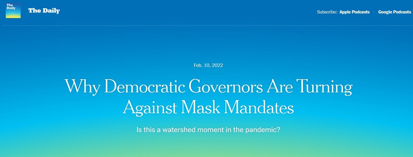 And it’s not even all the red-state politicians…just the ones feeling the pressure. While New Jersey’s Democrat governor has been more bullish on removing restrictions following his near loss in November to a Republican no-name, New York has no problem in continuing to mask children because of “the science”.